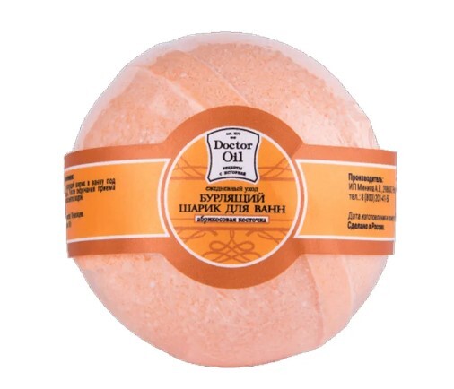 Состав: натрий двууглекислый, лимонная кислота, соль морская, экстракт абрикоса, кокоил изотионат натрия, масло оливковое, парфюмерная композиция, пищевой краситель.