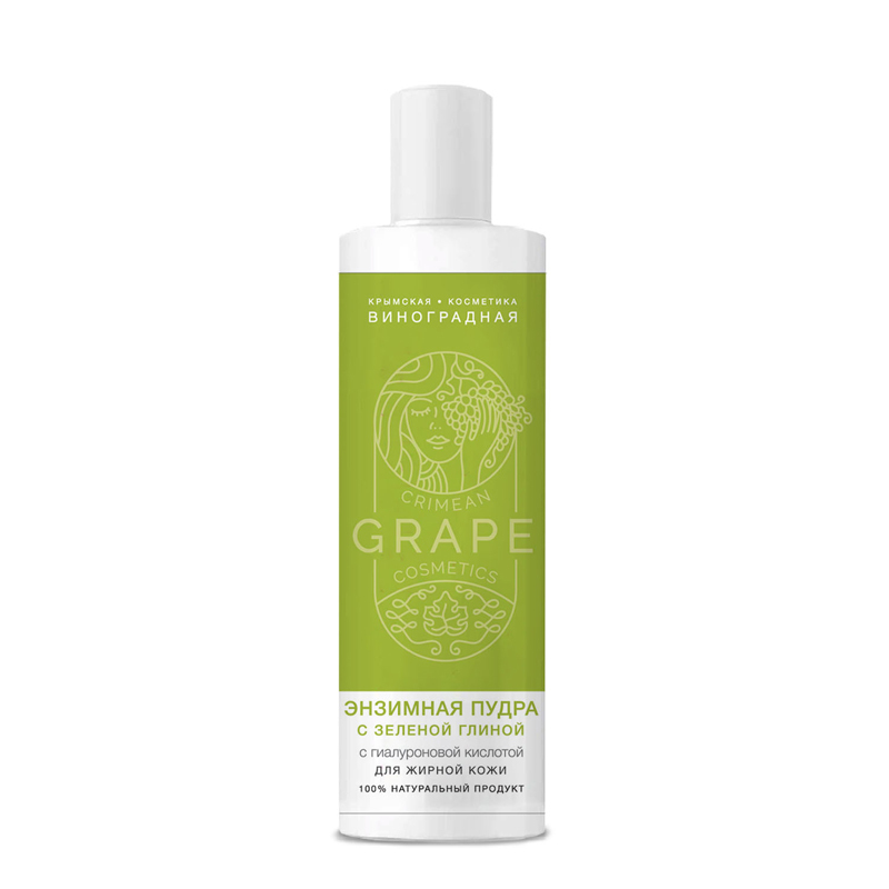 Состав: крахмал, зелёная глина, каолин, сухой экстракт винограда, кокоил изетионат натрия, рисовая мука, мука виноградной косточки, пудра ананаса, гиалуроновая кислота, аллантоин, папаин, ксантановая камедь.
