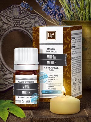 Эфирное масло мирта используется как в чистом виде, так и в композиции с другими эфирными маслами (гвоздики, жасмина, сандала, лимона, розы, корицы, бергамота, лаванды, шалфея мускатного, лайма, лавра).