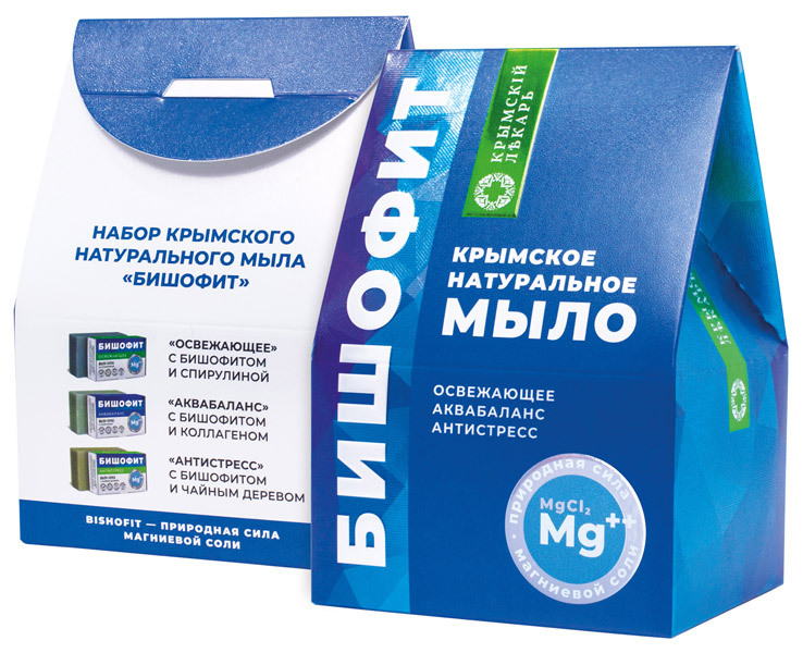 В подарочный набор мыла "Бишофит" входят три бруска солевого мыла: