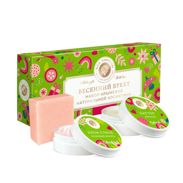Не нужно искать повода, чтобы порадовать близкого человека. Только представьте аромат баттера монои и нежную пену натурального парфюмированного мыла с белой фрезией. А какую мягкость и бархатистость подарит коже крем-суфле "Розовая вуаль"! "Весенний букет" от ТМ "Мануфактура ДОМ ПРИРОДЫ" скажет всё за вас.