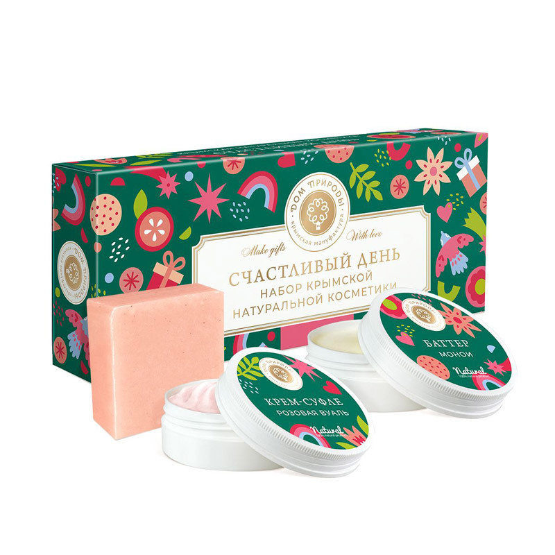 Набор косметики "Счастливый день" от ТМ "Мануфактура ДОМ ПРИРОДЫ" станет приятным подарком на любой праздник.