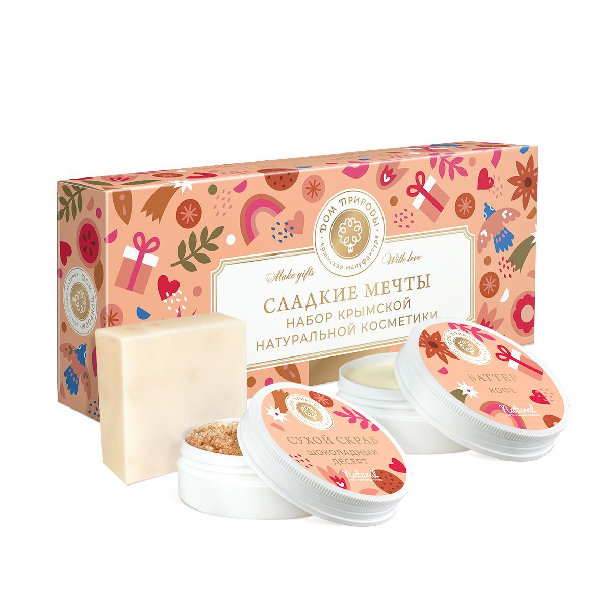 Баттер для тела "Кофе" 50г, Сухой скраб для тела "Шоколадный десерт", 50г., Мыло на кокосовых сливках "Нежный Пилинг", 100 г