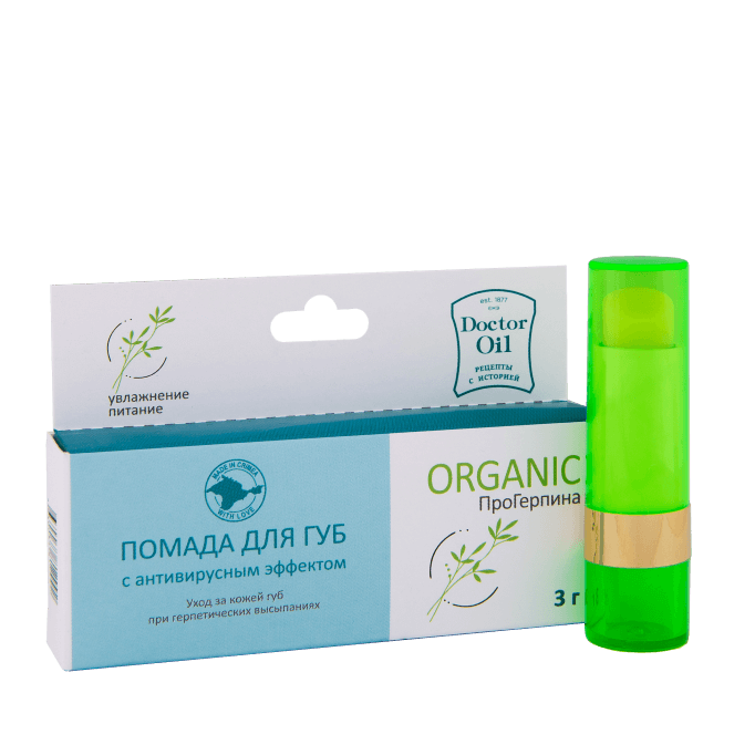 Натуральная изотоническая помада на основе растительной формулы биогенных концентратов растений, сока и экстраординарного масла корня копеечника забытого, оказывающих комплексное противовирусное, регенерирующее, противовоспалительное, увлажняющее действие на нежную кожу губ.