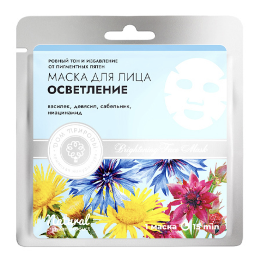 Маска тканевая "Осветление" с васильком девясилом сабельником и ниацинамидом, 25 г