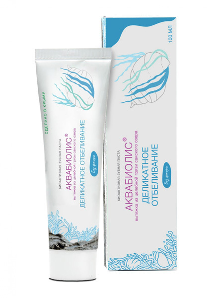 Эта паста очень мягко удаляет налёт и при постоянном использовании придаёт улыбке белизну. Действует она очень нежно, поэтому может применяться и для ухода за зубами с ослабленной эмалью. Глина, мел и оксид цинка – источник необходимых для здоровья зубов минеральных солей, они препятствуют образованию кариеса. В сочетании с папаином и эфирным маслом чайного дерева они отлично справляются с белковыми и углеводными отложениями. В синергии с лимонным маслом достигается мягкий отбеливающий эффект. АКВАБИОЛИС обладает вяжущим, антисептическим, противовоспалительным действием, что особенно полезно для людей, страдающих от болезней тканей пародонта. Не содержит фтора.